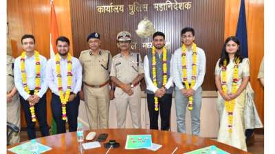 पुलिस कर्मियों के यूपीएससी में चयनित बच्चों को डीजीपी श्री कैलाश मकवाणा ने किया सम्मानित
