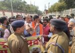 अवैध बूचड़खानों के खिलाफ हिंदू संगठन का निगम घेराव, पुलिस रोकने पर हनुमान चालीसा पाठ