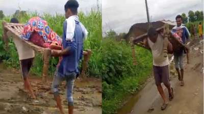 सिंगरौली: कीचड़ में धंसी उम्मीदें, खाट पर लिटाकर ले जाई गई गर्भवती महिला