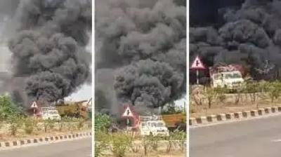 रोड मार्किंग मशीन में जोरदार ब्लास्ट, इलाके में मचा हड़कंप
