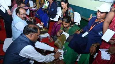 भावुक हुए स्वच्छता दीदियां, CM और डिप्टी CM ने सम्मान में पैर पखारे