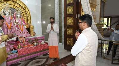 बजट प्रस्तुत करने के पूर्व वित्त मंत्री ओपी चौधरी पहुंचे श्रीराम मंदिर, की पूजा-अर्चना