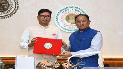छत्तीसगढ़ में पहली बार हस्तलिखित बजट पेश, वित्त मंत्री ओपी चौधरी ने किए हस्ताक्षर