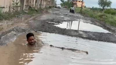 मैहर। नैशनल हाइवे 30 से जुड़ा लिंक रोड अब सड़क नहीं रहा, यह नागरिकों के लिए तालाबनुमा गड्ढों का