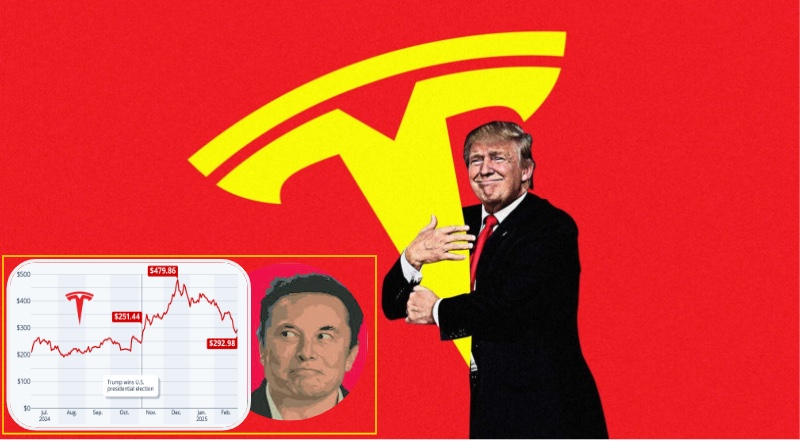 अमेरिका के राष्ट्रपति बनने के बाद डोनाल्ड ट्रंप ने इलॉन मस्क को एक बड़ी जिम्मेदारी दी। ट्रंप ने मस्क को DOGE (Department of Government Efficiency) का प्रमुख बना दिया। जहां एक तरफ, ट्रंप के आदेशों पर मस्क अमेरिकी सरकार के खर्च को कम कर रहे हैं, वहीं दूसरी ओर उनकी कंपनी टेस्ला के शेयरों में लगातार गिरावट देखने को मिल रही है। डोनाल्ड ट्रंप ने अमेरिकी राष्ट्रपति चुनाव में जीत दर्ज करने के बाद 20 जनवरी, 2025 को शपथ ली थी। 21 जनवरी को टेस्ला के शेयर 433.20 डॉलर के इंट्राडे हाई पर पहुंचे थे और 424.07 डॉलर के भाव पर बंद हुए थे।