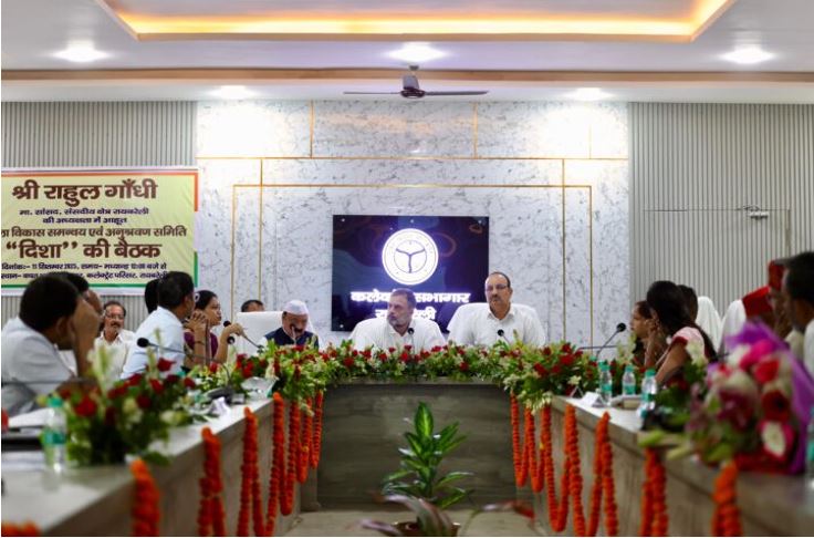 इससे पहले नेता प्रतिपक्ष राहुल गांधी ने दिशा की मीटिंग में भारत सरकार द्वारा संचालित योजनाओं की समीक्षा की। आधी अधूरी तैयारी के साथ आए अधिकारियों की उन्होंने क्लास भी ली। उन्होंने पीएम फसल बीमा योजना के लाभार्थी किसानों और किराए के भवनों में चल रहे आंगनबाड़ी केंद्रों की सूची तलब की है। राहुल गांधी ने अधिकारियों को केंद्र सरकार की सभी योजनाओं और कार्यक्रमों के प्रभावी के आंदोलन के निर्देश देते हुए कहा कि विकास योजनाओं को राजनीति से दूर रखने की जरूरत है।