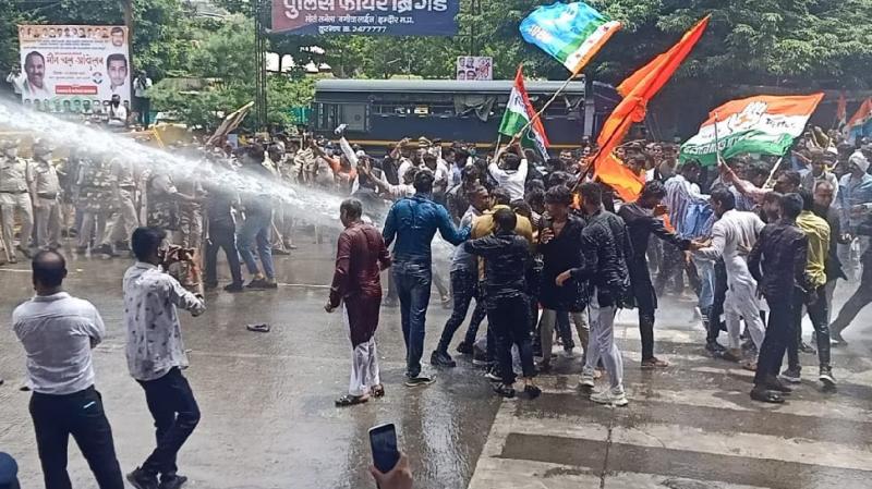 इंदौर में कलेक्ट्रेट पर जमकर हंगामा, पुलिस ने पानी की बौछार चलाकर खाली कराया परिसर