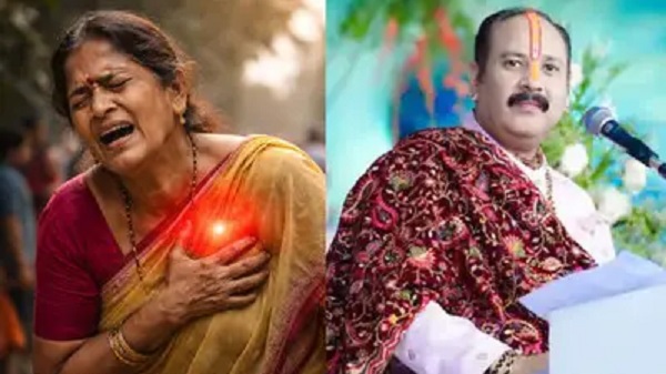 ग्वालियर । मध्य प्रदेश के ग्वालियर जिले (Gwalior district, MP) के डबरा में शुक्रवार को पंडित प्रदीप मिश्रा (Pandit Pradeep Mishra) की शिव महापुराण कथा (Shiv Mahapuran Katha) के दौरान एक दुखद घटना हुई।उत्तर प्रदेश की 65 वर्षीय पुष्पा देवी (Pushpa Devi), जो दो दिनों से नवग्रह शक्ति पीठ (Navgrah Shakti Peeth) पर कथा सुन रही थीं, पंडाल में बैठते ही अचानक हार्ट अटैक की चपेट में आ गईं और गिर पड़ीं। उनके मुंह से झागनिकलने लगा, जिस पर परिजनों ने तत्काल CPR देने की कोशिश की।उन्हें तुरंत कथा परिसर में बने अस्थायी अस्पताल ले जाया गया, जहां डॉक्टरों ने उन्हें मृत घोषित कर दिया।