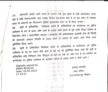 गृह विभाग ने उच्च प्रभार दिए जाने वाले अधिकारियों के लिए इकाई प्रमुखों के लिए निर्देश जारी किये है, विभाग ने कहा सूची में सम्मिलित निरीक्षक संवर्ग के अधिकारियों को कार्यवाहक उप पुलिस अधीक्षक के रूप में प्रभार सौंपे जाने के आदेश जारी करने के पूर्व उनके विरुद्ध वर्तमान में विभागीय जांच/ आपराधिक प्रकरण/ दण्डादेश की प्रभावशीलता इत्यादि होने की स्थिति की अपडेट जानकारी प्राप्त करने के बाद ही आदेश जारी किया जाना सुनिश्चित किया जाये।