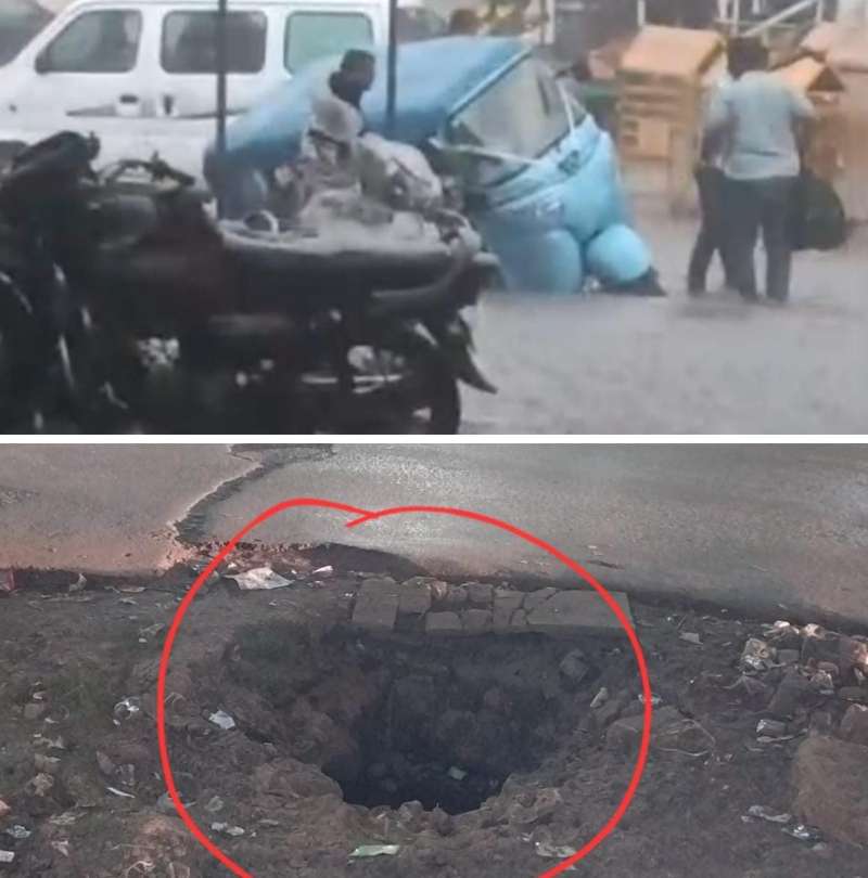 जानकारी के अनुसार जिले में आयी अचानक बारिश उपरांत खतरा और बाद गया, उसमे एक ऑटो गड्ढे में गिर गया। बताया जा रहा हैं की अचानक हुई बारिश के कारण नाली में पानी भर गया, जिससे गड्ढा पूरी तरह ढंक गया और नजर नहीं आया। इसी दौरान एक ऑटोचालक का वाहन उसमें गिर गया। गनीमत रही कि कोई जनहानि नहीं हुई, लेकिन ऑटो क्षतिग्रस्त हो गया और चालक को हल्की चोटें आईं।स्थानीय व्यापारियों और नागरिकों का आरोप लगाते हुए कहना है कि इस गड्ढे के चलते आए दिन छोटी-बड़ी दुर्घटनाएं होती रहती हैं। कई बार शिकायत करने के बावजूद अब तक कोई ठोस कदम नहीं उठाया गया है। यह लापरवाही किसी दिन बड़ी दुर्घटना का कारण बन सकती है। नागरिकों ने मांग करी है कि तत्काल उक्त गड्ढे को ढंके या वहां बैरिकेडिंग व चेतावनी बोर्ड लगाए, ताकि आमजन की सुरक्षा सुनिश्चित की जा सके।