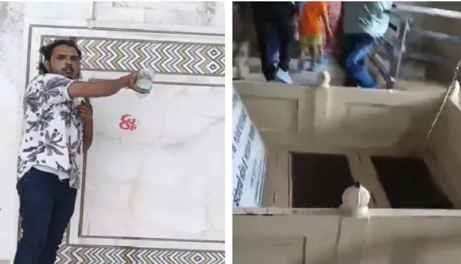 ताजमहल स्थित मकबरे के ऊपर 2 युवकों ने गंगाजल जल चढ़ाया