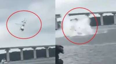 पुलिस का हेलिकॉप्टर सीधे नदी में गिरा