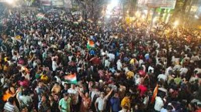 इंदौर|टी-20 वर्ल्ड कप फाइनल में भारत की जीत के बाद शहर में जश्न का माहौल बन गया। बड़ी संख्या में लोग जश्न मनाने के लिए राजबाड़ा पहुंचने लगे। भीड़ बढ़ने...