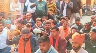 मंदिर के पास मिला गोमांस, हिंदूवादी संगठनों ने दिया धरना