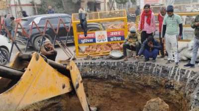 महाकुंभ मेला से पहले लखनऊ-प्रयागराज स्टेट हाईवे की सड़क धंसी