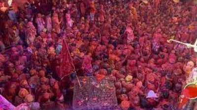मथुरा।मथुरा के बरसाना में लड्डू मार होली के दौरान राधा रानी मंदिर में श्रद्धालुओं का सैलाब उमड़ पड़ा। बड़ी संख्या में श्रद्धालुओं के आने से भगदड़ जैसी स्थिति उत्पन्न हो...