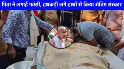 हथकड़ी लगे हाथ, आंखों में आंसू – जेल में बंद बेटे ने पिता का किया अंतिम संस्कार, 1.71 करोड़ के मामले ने छीनी खुशियां