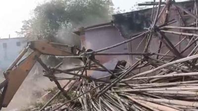 गोलीकांड के मुख्य आरोपी करण साव के अवैध मकान पर प्रशासन की बुलडोजर कार्रवाई