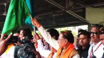 रायपुर : मुख्यमंत्री विष्णु देव साय ने आज रायपुर रेलवे स्टेशन से पहली विशेष तीर्थ यात्रा ट्रेन को तिरुपति, मदुरै और रामेश्वरम के लिए हरी झंडी दिखाकर रवाना किया। इस...
