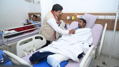 उपमुख्यमंत्री विजय शर्मा ने आईईडी ब्लास्ट में घायल जवानों से अस्पताल में की मुलाकात